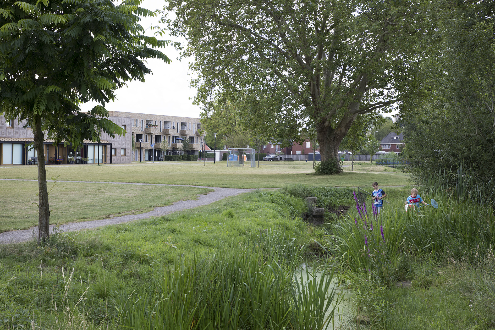 Elementen van de aanpak worden toegepast in een wijkvernieuwingsproject in Vlaardingen. In deze naoorlogse wijk wordt ingezet op verdichting en vergroening, waarbij verhard oppervlak wordt teruggedrongen en ruimte ontstaat voor water en natuur. Volgens betrokkenen kan hierdoor water lokaal worden opgevangen, waardoor aanpassingen aan riolering mogelijk beperkt blijven.